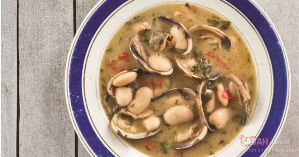 Midyeleri bir kâseye aktarın. Kalan zeytinyağı ile kalan sarımsak ve kırmızı biberi soteleyin. Süzdüğünüz midye suyunu ve sıcak sebze suyunu ilave edin. Çorba kaynamaya başlayınca fasulyeyi ilave edip, 5 dakika orta ateşte kapağı kapalı olarak pişirin.