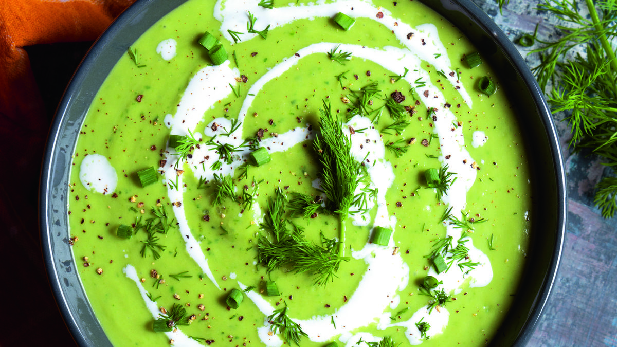 Üzeri için kıyılmış dereotu, taze soğanın yeşil kısımları ve taze çekilmiş karabiber serpiştirin. Krema gezdirip ılık olarak servis yapın.