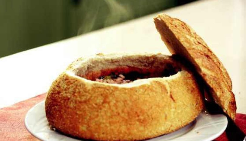 Tuz ve karabiberini ayarlayın. Yuvarlak bir ekmeğin üzerinden kapak kesip, içini çıkarın. İç kısmını sıvı yağ ile fırçalayın ve önceden ısıtılmış fırında birkaç dakika bekletin. Dış kabuğu iyice sertleşen ekmeğin içinde çorbanızı servis yapın.