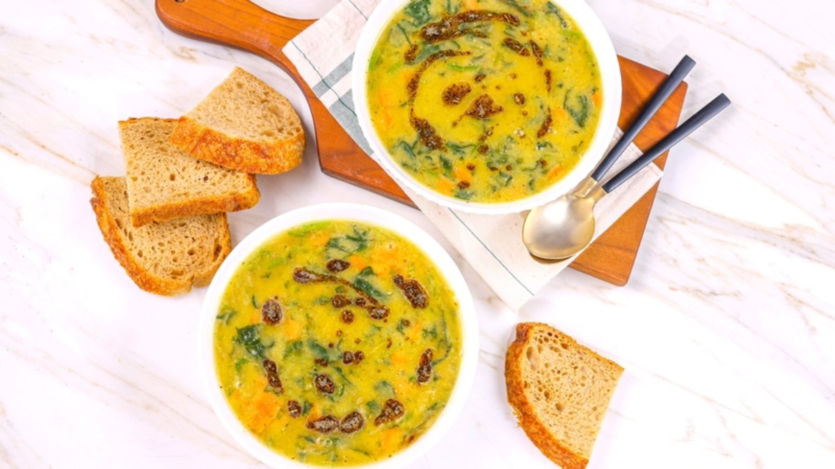 Ocak alın. Yumuşayıp pişen mercimekli karışımı blender seti yardımı ile çekin. Üzerine havuçlu ıspanaklı karışımını katıp karıştırın. Baharatları ekleyin.