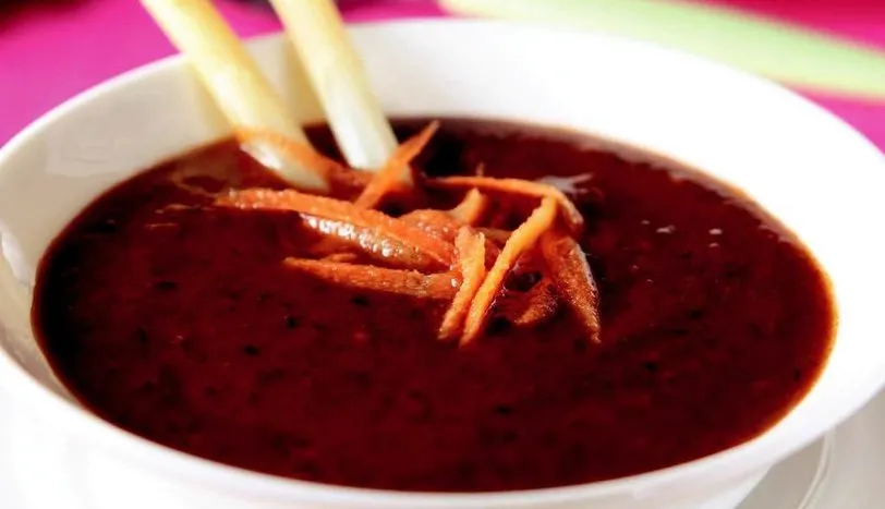Havuç, mantar, kuşkonmaz, krema, soya sosu, süt veya suyu blenderden geçirin. Sıvı yağı bir tencereye alın ve salçayı kavurun. Unu ilave edip, kavurmaya devam edin. Blenderden geçirdiğiniz sebze püresini katın ve 2 dakika daha kavurun. Koyu bir kıvam alana kadar su katın. Anason, tuz ve karabiber ekleyin. Kaynadıktan sonra sıcak olarak servis yapın.