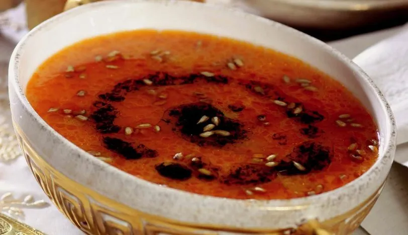 Toz tarhanayı tavuk suyunda 1 saat ıslatın. Daha sonra ocağın üstünde sürekli karıştırarak koyulaşıncaya kadar pişirin. Diğer tarafta bir tavada tereyağını eritin. Biber salçası, ince kıyılmış sivri biber ve sarımsağı kavurun. Kuru nane ve pul biberi ilave ederek bu karışımı çorbaya katın. Ay çekirdeği içini tavada pembeleştirdikten sonra çorbanın üzerine gezdirip sıcak olarak servis yapın