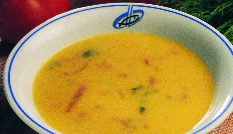 Kırlangıç balığının etini kemiğinden ayırın. Kemikleri bir litre suyla birlikte kaynatın. Su yarı yarıya azaldığında süzgeçten geçirip, bir kenarda bekletin. Soğanı ince kıyıp, başka bir tencerede, tereyağında pembeleştirin. Soğanın üzerine kemik suyunu ekleyin. Küp şeklinde doğranmış havuçları ve patatesleri ilave edin. Tuz ve karabiberini ayarlayın. Sebzeler yumuşadıktan sonra iri parçalar halinde doğranmış balık etini ilave edin (balık eti dağılmayacak şekilde pişmeli). 4 çorba kaşığı kremayı ekleyin. 1-2 dakika daha pişirdikten sonra ince kıyılmış maydanozu ilave edin. Sıcak servis yapın.