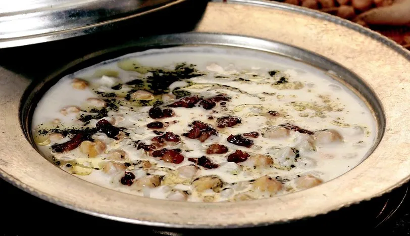 Buğday ve nohutu bir gece öncesinden suda bekletin. Suyunu süzdükten sonra 6 bardak suda et, buğday ve nohutu kısık ateşte 1 saat haşlayın. Kaynadıktan sonra yoğurdu azar azar karışıma ilave edin. Bu arada dibinin tutmaması için çorbayı sürekli karıştırın. 10 dakika daha kaynadıktan sonra ocağın altını kapatın. Servis tabağına alın. Üzerine kızdırılmış zeytinyağı ve nane gezdirip sıcak olarak servis yapın.