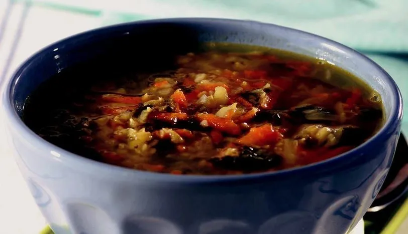 Öncelikle soğan ve sarımsağı incecik kıyın ve zeytinyağında kavurun. Daha sonra ayıklanmış ve yıkanmış kırmızı mercimeği ilave edip 5 dakika çevirin. Suyunu ekleyip, kaynamasını bekleyin. Su kaynayınca ıspanak, rendelenmiş kabak ve havucu ilave edin. Tuz ve karabiberini ayarlayın. Sebzeler iyice yumuşayınca ocağı kapatın. Üzerine nane serptikten sonra sıcak servis yapın.