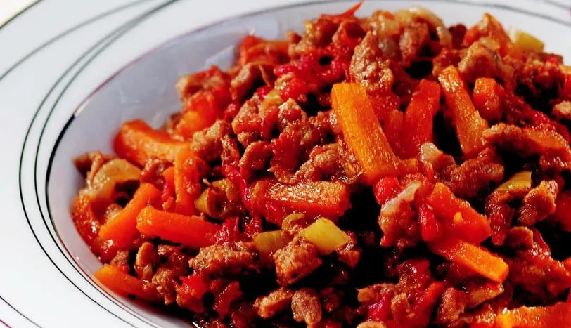 Et ve suyu tencereye alıp, orta ateşte hafif yumuşayana dek pişirin. Zeytinyağı ekleyip 5 dakika daha pişirin. Doğranmış soğan, sarımsak ve biberi ilave edin. Kabukları soyulup incecik doğranmış domates, ardından doğranmış havuç ekleyip kısık ateşte sebzeler yumuşayana dek pişmeye bırakın. Tuz ve karabiberini ayarlayın, ocaktan alın. 2-3 dakika dinlendirip servis yapın.
