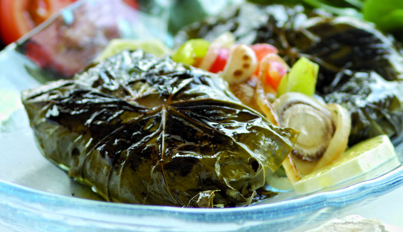 Uskumruların filetolarını çıkarıp iyice yıkayın. Balık suyu için, balık kemiklerini bir tencereye alın. ‹ri parçalar halinde doğranmış havuç, soğan, defne yaprağı, limon, maydanoz sapları ile, su ve 1 su bardağı beyaz şarabı ekleyin. Orta hararetli ateşte 1 saat kadar kaynatıp süzün. Başka bir tencerede yarım çay bardağı zeytinyağı ve 1 tatlı kaşığı tereyağını hafifçe kızdırın. Unu ekleyip, sararana dek kavurun. Üzerine 1 su bardağı beyaz şarabı ve balık suyunu ekleyin. iyice kaynatıp süzün ve kremayı ekleyin. Domatesi soyup çekirdeklerini çıkartın. Küp şeklinde doğrayıp, diriliklerini kaybedene kadar soteleyin. Domates sosunu, balık suyuna ekleyin. Tuzunu ayarlayıp karıştırın ve tencereyi kenara alın. Taze asma yapraklarını kaynar suda 1 dakika kadar haşlayın ve buzlu su dolu bir kaba çıkartın. Filetoların üzerine tuz, karabiber serpip ızgarada ya da yapışmaz yüzeyli tavada hafifçe kızartın. Soğanı ve mantarları halka, domatesi küp küp doğrayın. Sarımsakları incecik kıyın. Defne yapraklarını ikiye kesip, ıslatın. Yapışmaz yüzeyli tavaya zeytinyağı ve tereyağını alıp kızdırın. Sırmasak ve soğanları pembeleşene kadar kavurun. Mantarları ve defne yapraklarını ekleyip, karıştırarak sotelemeye devam edin. Maydanozları dal halinde ekleyin ve tuzunu ayarlayın. Tavayı ocaktan alın. Haşlanmış asma yapraklarını buzlu sudan çıkartın. Asma yapraklarının saplarını ayıklayıp düz bir zemine serin. Yarı pişmiş uskumruları yaprakların üzerine yerleştirin. Sebzeli harçtan ekleyin. Yaprakların kenarlarını katlayarak balıkların üzerini kapatın. Açılmaması için, kenarlarını kürdan ile tutturun. Yapışmaz yüzeyli tavaya çok az yağ gezdirin. Balıkların her iki tarafını da kısık ateşte i kızartın. Servis tabağına domatesli beyaz şarap sosundan yayın. Üzerine balığı koyup servis yapın.