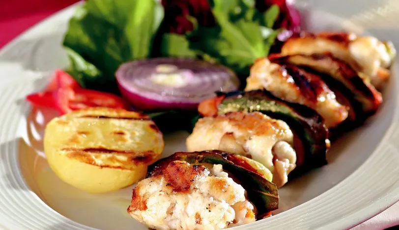 Dil balığı filetosunu 2 parmak kalınlığında şeritler halinde doğrayın. Şeritlerin içine 2'şer adet karides yerleştirip, sarın. Domatesleri dörde, sivri biberleri üç parçaya bölün. Daha sonra şişe sırasıyla karidesle sarılmış dil balığı, defne yaprağı, domates ve sivri biber olacak şekilde dizin. Bütün malzemeler bitene kadar işleme devam edin. Dil şişleri ızgarada arkalı önlü pişirin ve sıcak olarak servis yapın.
