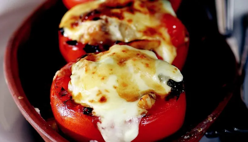 Kırlangıcın filetosunu çıkarın. Tereyağını bir tavaya alıp ince kıyılmış sivri biberleri soteleyin. Üzerine sarımsak, arpacık soğan, mantar, soya sosu ve kekik ilave edin. En son küp şeklinde doğranmış balığı ekleyin ve bütün malzemeyi sotelemeye devam edin. Domateslerin içini temizleyin ve sebzeli karışımı paylaştırın. Beşamel sos için, tereyağını eritip unu rengi dönene kadar kavurun. Üzerine sütü azar azar ilave edip karıştırın. Koyulaşınca ocaktan alın ve karabiberle, muskat ilave edin. Sosu domateslerin üzerine gezdirip, birer dilim dil peyniri yerleştirin. Önceden ısıtılmış 200 derece fırında 10 dakika pişirin ve sıcak olarak servis yapın.