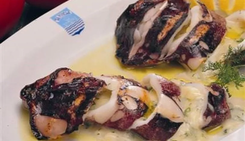 Peynirleri küp küp doğrayın. Tuz ve karabiber ekleyin. Biberleri ve 1 demet ayıklanmış dereotunu ince kıyın. Kalamarların içlerini temizleyin. Peynir, biber ve dereotunu kalamarların içine doldurun. Kalamarları ızgarada veya yapışmaz yüzeyli tavada kızartın. Servis tabağına alın. Üzerine zeytinyağı gezdirin. Dereotu ile süsleyip servis yapın.