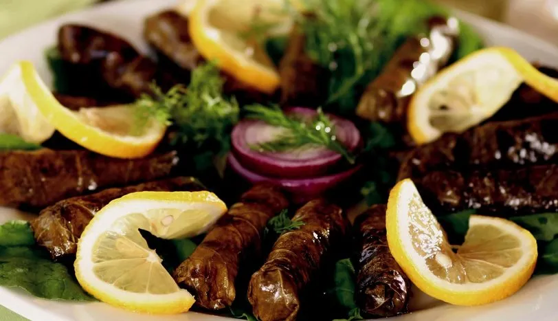 Öncelikle hamsiyi ayıklayıp kılçıklarını çıkarın. Yıkayıp süzdükten sonra ince kıyın ve bir kenara alın.Sıvı yağda yemeklik doğranmış soğanı kavurun. Dolmalık fıstığı ekleyip kavurmaya devam edin. Pirinci de ilave edip 1-2 dakika daha kavurduktan sonra hamsi, kuş üzümü, rendelenmiş domates, kesme şeker,tuz, kimyon, karabiber ve sıcak su ilave edin. Kısık ateşte suyunu çekene kadar pişirin. İnce kıyılmış maydanoz ve dereotunu ekledikten sonra karıştırıp tencereyi ocaktan alarak ılınmaya bırakın. Yaprağın içine 1 çorba kaşığı hamsili iç harçtan koyup incecik sarın. Yaprak ve iç harç bitene kadar işleme devam edin. Hazırladığınız hamsi sarmaları ızgara yapın.