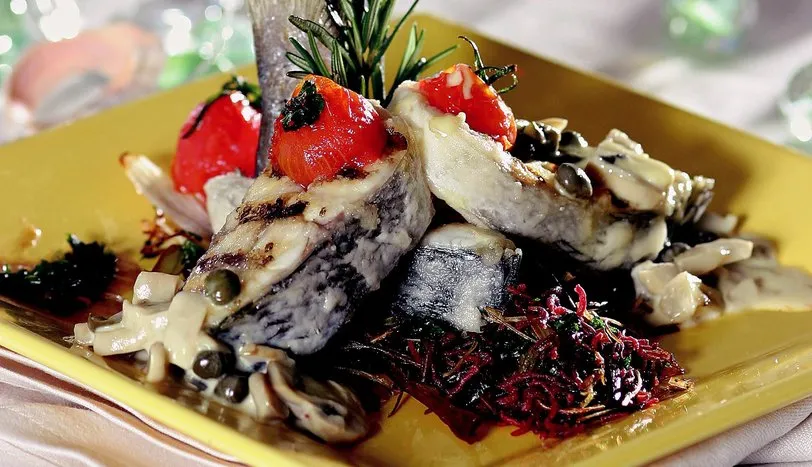 Ayıklanmış ve yıkanmış balıkları kalın halkalar şeklinde dilimleyin. Tereyağında arkalı önlü kızartıp bir kenara alın. Aynı yağda ince kıyılmış pırasa ve maydanozu kavurup servis tabağına alın. Üzerine balık dilimlerini yerleştirin. Diğer tarafta sıvı yağda kapari, soya sosu, krema, sarımsak, kimyon ve karabiberi hafif ısıtıp balıkla birlikte servis yapın