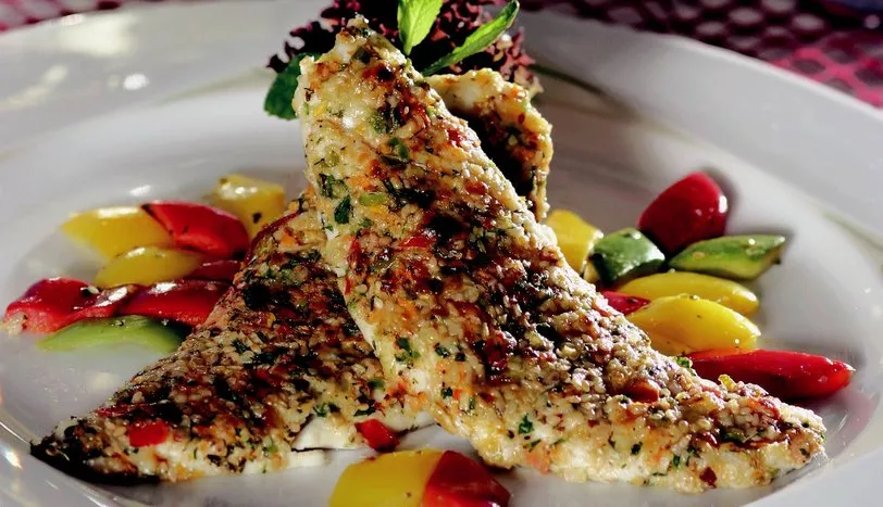 Balıkların filetosunu çıkarın. Kabukları soyulmuş ve zar şeklinde doğranmış sebzeleri sıvı yağda soteleyin. Baharat ve sarımsağı ilave edip sotelemeye devam edin. En son kaşar peynirini ekleyip 1-2 dakika daha çevirdikten sonra filetoları bu karışıma bulayın. Önceden ısıtılmış 180 derece fırında 15 dakika pişirin. Sos için sıvı yağda unu hafif pembeleşinceye kadar kavurun. Krema, safran ve baharat karışımını ilave edip kısık ateşte 1-2 dakika pişirin. Balıkları safran sos ve Akdeniz yeşilliği ile birlikte servis yapın.