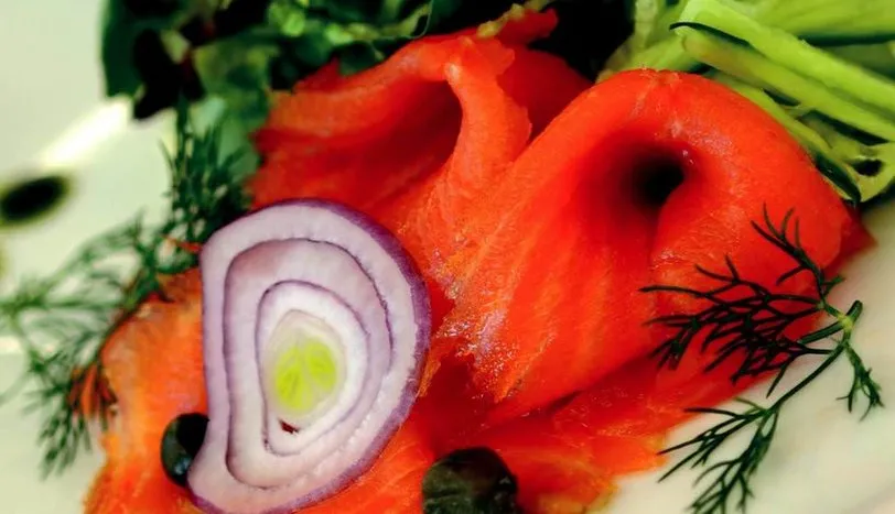 Parmesan peynirini, yapışmaz yüzeyli tavaya üçgen şeklinde (ya da hoşlandığınız başka bir figür) ve yaklaşık 2 mm kalınlığında koyun. Ocağa alıp kızartın. Daha sonra tavadan kaldırıp şekillen-dirin. Füme somon dilimlerini tabağın bir tarafına alıp, üstte kalan kısmına kızartılmış parmesan peynirini koyun. Yanına kibrit seklinde doğranmış salatalık yerleştirin. Yeşillikleri peynirin üzerine, dereotu ve kırmızı soğanı ise balıkların üzerine atarak servis yapın.