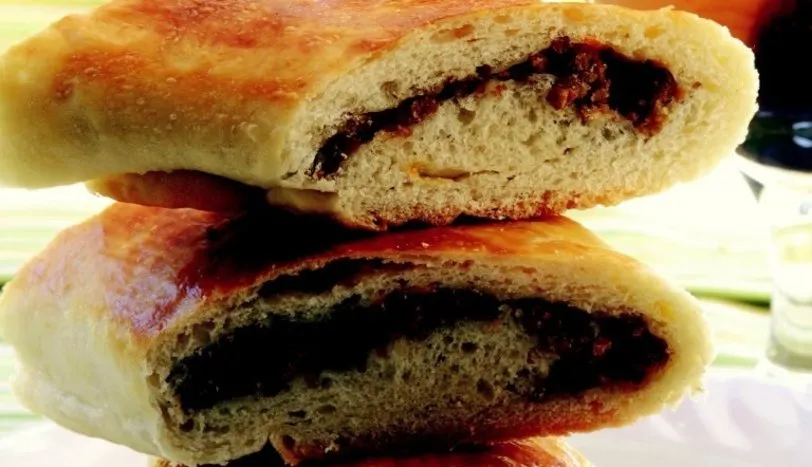 portakal büyüklüğünde parça koparın. Her bir hamuru unla birlikte uzunlamasına açın. Kıymalı iç için kıyma, ince kıyılmış soğan, tuz, karabiber ve pulbiberi kavurun. Maydanozu ilave edip 1-2 dakika daha