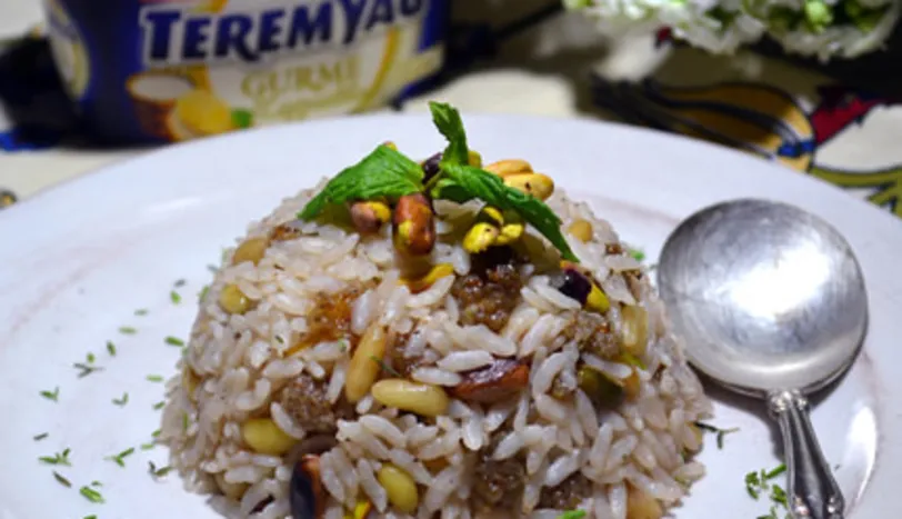 Teremyağ Gurme Kaymaklı'yı eritip, içine dolmalık fıstıkları ekleyin ve hafifçe kavurun. İçine pirinçleri ilave edip pirinçler şeffaflaşıncaya kadar kavurmaya devam edin. Yeşil fıstık, karabiber ve tuzu ekleyerek 1-2 dk daha kavurun. Son olarak ölçülü suyu ve kuru dutları ilave edip kısık ateşte pişmeye bırakın. Suyunu tamamen çeken pilavı 10 dk kadar demlendirdikten sonra sıcak olarak servis yapın.
