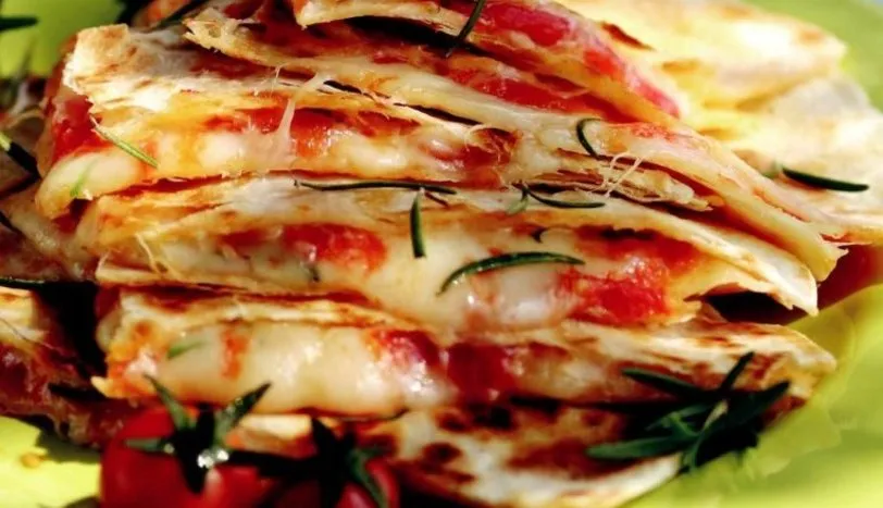 Domateslerin kabuklarını soyup ince doğrayın. Suyunu süzüp kenara alın. Biberiye yapraklarını saplarından ayırın. 3 adet lavaşı düz bir zemine koyup üzerine kıyılmış domatesi paylaştırın. Tuzunu ayarlayın. Kaşar peyniri ve biberiye serpip zeytinyağı gezdirin. Üzerine ikinci lavaşı kapatın. Yapışmaz yüzeyli tavada önlü arkalı pişirin. Dilimleyip servis yapın.