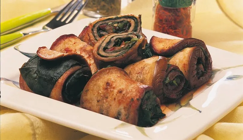 DÜZ bir tepsiye 1 su bardağı su koyun. İçerisine 3 diş dövülmüş sarımsak, tuz, nar ekşisi, nane, limon suyu, sirke ekleyip kaynamaya bırakın. Diğer tarafta 2 adet patlıcanı alacalı soyup, çok ince, uzunlamasına dilimleyin. Kaynayan ekşili suya patlıcanları tek sıra halinde dizin. Ocağı kısıp, patlıcanları yumuşamaya bırakın. Diğer tarafta pazı yapraklarını yıkayıp, kaynayan patlıcanların üzerine serin. 1-2 dakika sonra ocağı kapatın. Küp doğranmış domates, 1 diş sarımsak, salça, pul biber, ince kıyılmış taze soğan, maydanoz ve biberleri çatal yardımıyla ezin. Sebzeleri kaynar sudan çıkarıp tabağa alın. Patlıcandan bir dilim alıp üzerine bir yaprak uzunlamasına pazıyı serin. 1 çay kaşığı domatesli harçtan koyup, yaprak sarması gibi sarın. Tabağa dizip, kalan ekşili suyu üzerine gezdirin. Soğuyunca servis yapın.AŞÇININ NOTUPazı yerine taze asma yaprağı ile de hazırlanabilir.