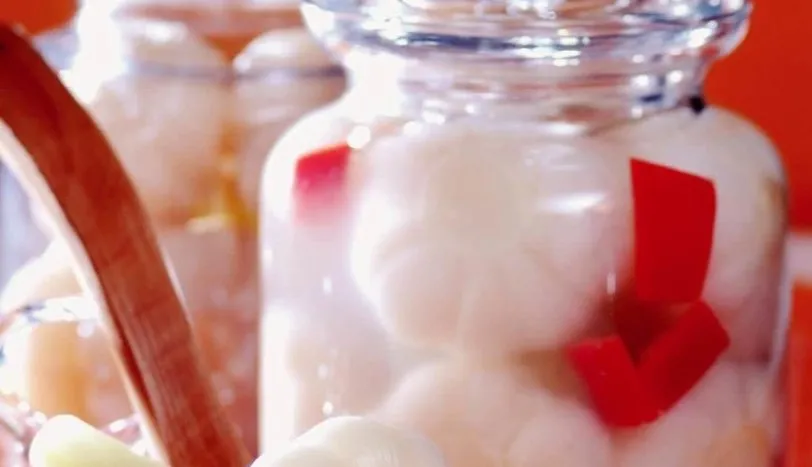 SARMISAKLARI taze iken alıp, püskül ve saplarını temizleyip, dişleri düşmeyecek şekilde bir veya iki kat soyun. Sonra sarmısakları derince bir kaba koyup, su ile doldurun. Acılığını almak için 1-2 gün boyunca suyunu değiştirin. Derince bir kabın içerisine tuzu, tozşekeri ve sirkeyi koyup eriyinceye kadar karıştırın. 10x20 cm ebadındaki temiz bir kavanozun dip kısmına temizlenmiş dereotu veya rezeneyi yerleştirin. Sarmısakların suyunu süzüp, limon dilimleri ile kavanoza yerleştirin. Sonra üzerine hazırladığınız tuzlu karışımı dökün. Ağzını kapatıp, en az 45 gün süre ile serin ve karanlık bir yerde bekletin.
