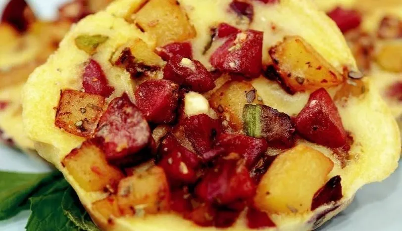 Sosisleri, patates ve kabağı küp doğrayın. Tereyağında soteleyin. Kekik, tuz ve karabiberi ekleyin. Malzemeyi, muffin kalıplarına paylaştırın. Ayrı bir yerde, yumurta, un ve sütü çırpın. Bu malzemeyi de sebzelerin üzerine gezdirin. 200 derece fırında 25 dakika pişirip servis yapın.