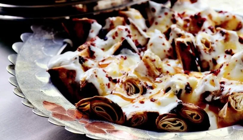 SU, tuz ve yumurtayı derin bir kaba alın. Kulak memesinden sert bir hamur elde edene kadar un ekleyip, yoğurun. 6 adet bezeye ayırın ve her birini ince olacak şekilde oklava ile açın. Daha sonra sac üzerinde önlü arkalı pişirin. Yufkaları rulo yapın ve 3 parmak genişliğinde kesip, 180 derece fırında kurutun (kuruyan yufka parçalarını kışın kullanmak üzere serin bir yerde muhafaza edebilirsiniz). Yufka parçalarını et suyunda ıslatıp, kestiğiniz kısım üste gelecek şekilde servis tabağına yerleştirin. Üzerine az tuz ile çırptığınızyoğurdu, en üste de tereyağında yaktığınız pul biberi gezdirin ve sıcak servis yapın.