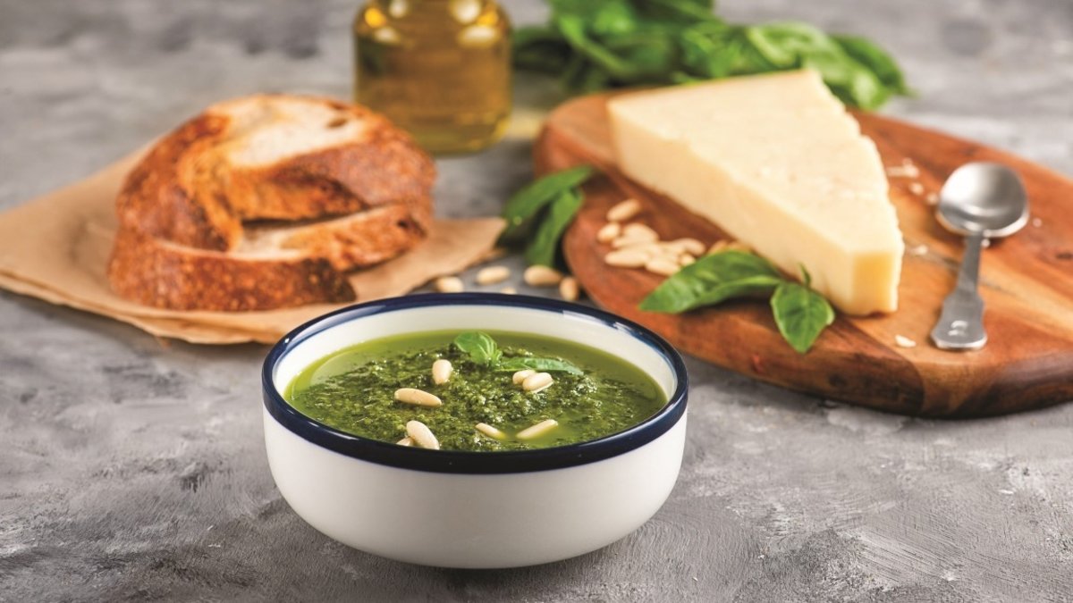 Çam fıstığı, fesleğen ve parmesan peyniri içeriği ile leziz mi leziz yeşil sosların başında gelen pesto sos, kızarmış ekmek diliminin yanı sıra makarna, et ve sandviç tarifleri ile pek uyumlu.