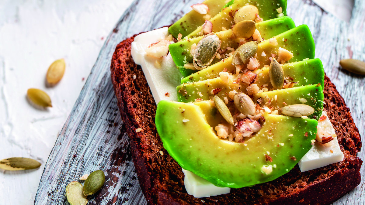 Kızarmış ekmek dilimlerinin üzerine ince dilimlenmiş peynirleri yerleştirin. Peynirin üzerine avokado dilimlerini dizin. Üzerine iri kıyılmış cevizi ve kabak çekirdeğini serpiştirin. Susam ekleyerek servis yapın.