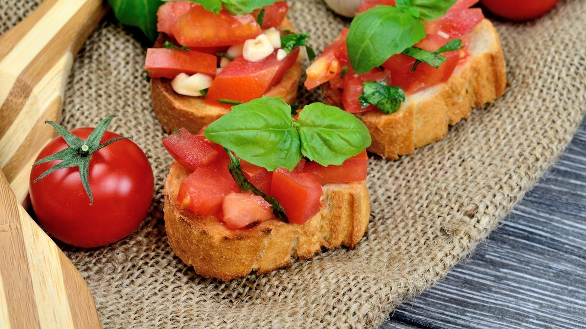 Bruschetta, rustik bir İtalyan lezzetidir. Bu ruhu yansıtmak için porselen tabaklar yerine büyük, doğal ahşap sunum tahtaları veya mermer servis tabakları kullanmak görsel etkiyi artırır.