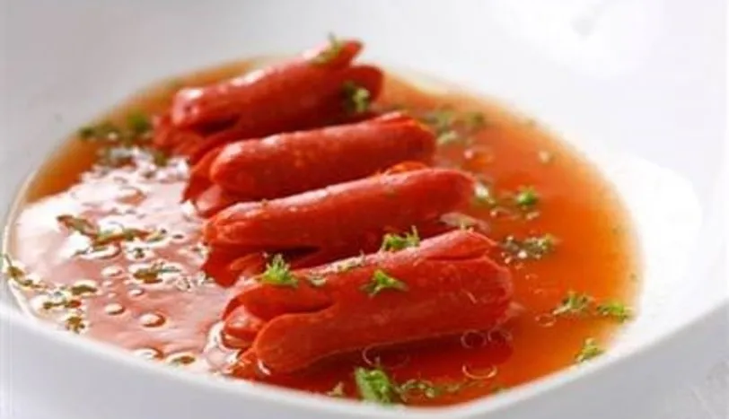 Magicook'un içine 2 kap su ile ilave edin. Sosisleri istediğiniz şekilde uçlarını haşlanınca çiçek çiçek olacak şekilde kesip Magicook buhar sepetine yerleştirin. Magicook'un kapağını kapatın ve mönüden ''buharlı'' ayarını seçin. ''pişirme zamanı''ndan 10 dakika ayarlayıp kapağını kapatın. Pişirme süresince zeytinyağı, ketçap ve sodayı bir kasede karıştırarak sosunu hazırlayın. Sosisler haşlanınca bu sos ile tatlandırın. Sıcak servis yapın.