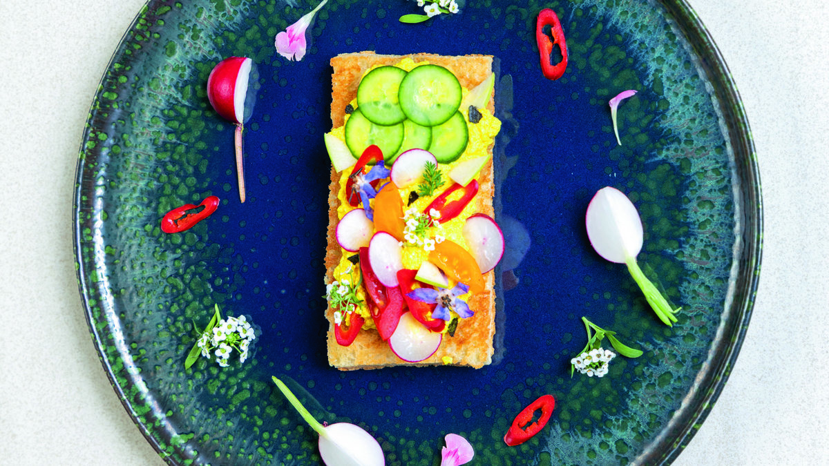 Üzerini baby turp dilimleri, salatalık, renkli çeri domatesler, meksika biberi, yeşil elma dilimleri, yenilebilir çiçekler ve siyah maldon tuzu ile süsleyebilirsiniz.