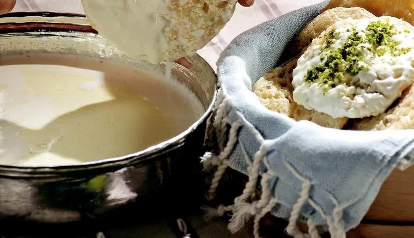 SÜTÜN üzerinin kaymak bağlaması için bir gece önceden sütü 4 adet tepsiye pay edip, buzdolabında dinlendirin. Yaş mayayı az miktarda ılık suda eritin. Kesme şeker ekleyip, karıştırın. Azar azar un ekleyip, krep hamurundan daha kıvamlı bir hamur elde edin. Hamur iki misli kabarana dek üzerini kapatıp, dinlendirin. Hamurdan küçük boy bir kepçeyle alıp, kısık ateşte ve yapışmaz yüzeyli tavada tek tarafını kızartın. Hamur bitene kadar işlemi tekrarlayın. Kaymak bağlamış sütü buzdolabından alın. 1 adet hamurun kızartılmamış tarafını kaymağa batırıp çıkarın. Üzerine bal gezdirin. Tozşeker ve antepfıstığı serpip servis yapın.