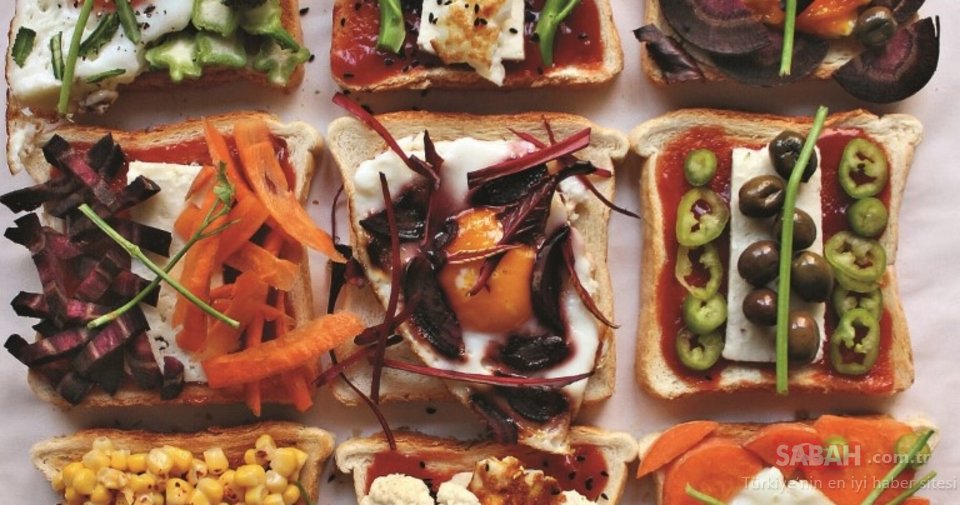 Brokoli ve karnabaharı kaynamış suda 5 dakika bekletip süzün ve bir tutam tuz ekleyin.Tost ekmeklerini kızartın. 5 dilim ekmeğe yumurtaları koyun. 4 dilim ekmeğe salça sürün. Havuçları temizleyip irice rendeleyin. Biberi verev doğrayın. Ekmeklerin üzerlerine arzunuza göre peynir, zeytin sebzeleri yerleştirin. Çörek otu, pul biber, karabiber ve maydanoz sapı ile süsleyerek servis yapın.