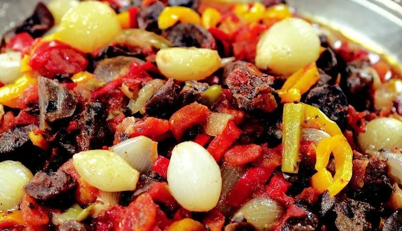 Böbreği ilave edip harlı ateşte kavurun. Pembeleşmeye başlayınca ayıklanmış arpacık soğanları ekleyin. Tavanın ağzını bir kapakla kapatarak kısık ateşte soğanları soteleyin. Küp doğranmış havucu ilave edip kavurmaya devam edin. Jülyen doğranmış biberleri ekledikten sonra 15 dakika daha kavurun. Kabuğu soyulmuş ve küp doğranmış domatesi kattıktan sonra suyunu çekene kadar pişirin. Sıcak olarak servis yapın.