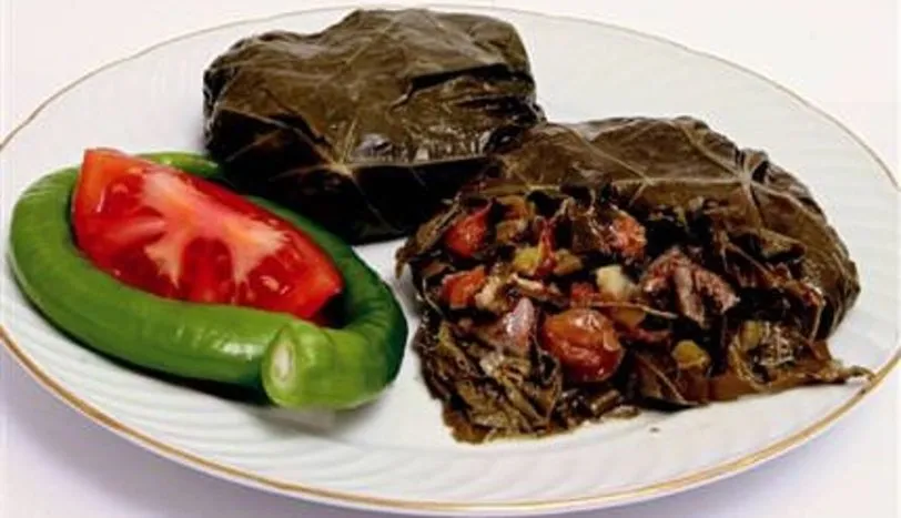 SOĞAN ve maydanozu incecik kıyın. Domates ve yeşil biberi küçük doğrayın. Eti ilave edin. Tuz, karabiber, pulbiber, kekik ve sıvıyağ ekleyin. Tüm malzemeyi harmanlayın. 3 adet asma yaprağını kaseye yerleştirin. İçine etli malzemeden doldurun. Üzerine 3 adet yeşil erik koyun. 1 adet yaprakla üzerini kapatın. Dışta kalan yaprakları da içe doğru kapatın. Ters çevirip, fırın tepsisine sıralayın. Üzerine 2 su bardağı su ilave edin. Kabın üzerini alüminyum folyo ile kapatın. Orta ısılı fırında 60 dakika pişirin. Patates püresi ile birlikte servis yapın.