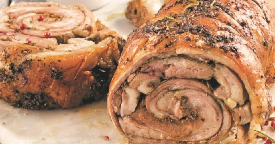 Kuzu döşleri yıkayıp kurulayın ve yağlarını temizleyin. Dış yüzeylerini 1 çay kaşığı tuz, yarım çay kaşığı karabiber ve 1 çorba kaşığı zeytinyağı karışımı ile ovalayın. 3 dal biberiye sapını tersten sıyırarak yapraklarını bir kaseye alın. Üzerine hardal, 4 diş dövülmüş sarmısak, 1 çay kaşığı tuz, yarım çay kaşığı karabiber, toz kırmızıbiber ve kimyon ekleyip havan tokmağı ile iyice dövün. Bir adet döşü düz olarak önünüze alın, üzerine biberiyeli karışımı yayıp, ikinci döşü üzerine kapatın ve eninden sıkıca rulo şeklinde sarın. Fırın kabına alıp, mutfak ipi ile birkaç yerinden bağlayın. Pişirme kağıdı ile üzerini kapatıp, önceden ısıtılmış 140 derece fırında 3 saat pişirin (her saat başı, fırın tepsisinde biriken yağ ile eti ıslatın).
