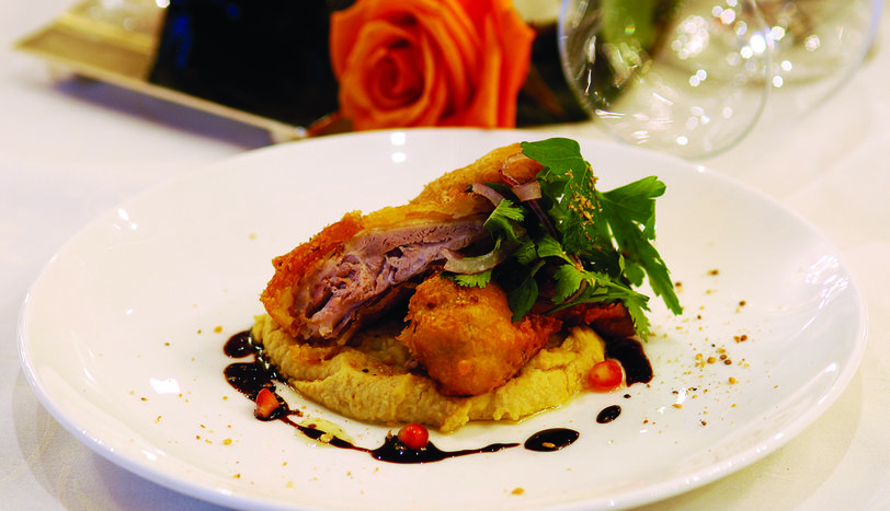 Bıldırcınları 6 dakika haşlayıp soğumaya bırakın. Humus için sarmısak ve tahini blendırdan geçirin. Krema kıvamına gelinceye kadar sıcak su ekleyin. Daha sonra nohutları ekleyip tekrar blendırdan geçirin. Tuz ve karabiberini ayarlayın. Diğer tarafta ezme için bira dışındaki tüm malzemeyi karıştırın. Birayı ekleyip tekrar karıştırın. Soğuyan bıldırcınları una bulayın ve ezme içine yatırın. Renkleri açık kahverengi olana kadar kızgın yağda kızartın. Yağlarının süzülmesi için kağıt havlu üzerine alın. Servis tabağının ortasına humus yayın. Bıldırcını humusun üstüne yerleştirin. Yeşil salata eşliğinde servis yapın.