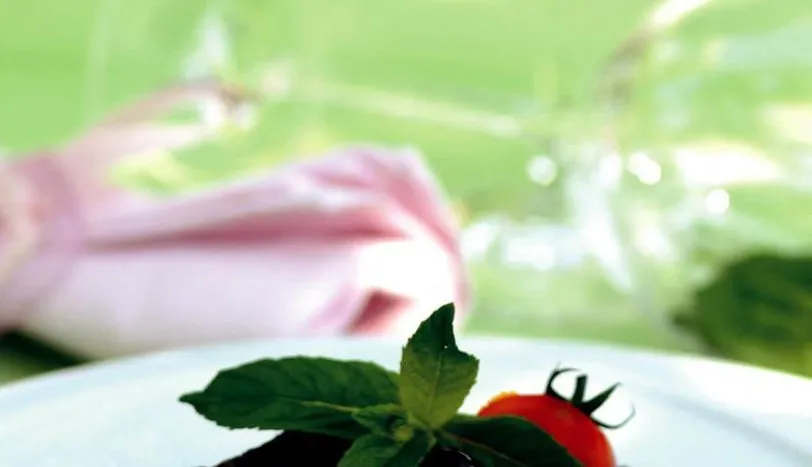 BONFİLELERE karabiber serpin. Geniş bir tavaya aldığınız sıvıyağda önlü arkalı kızartın. Tuz serpip kenaraalın. Kremayı küçük bir kaba alıp ısıtın. İçine küçük parçalara bölünmüş çikolatayı ekleyip eritin. Üzerine tereyağı ve çok ince kıyılmış kereviz yaprakları, tuz ve karabiber ekleyin. Birkaç dakika daha pişirip ocaktan alın. Bonfile dilimlerini servis tabağına alın. Üzerine çikolatalı sos gezdirin. Kiraz domatesle süsleyerek servis yapın.