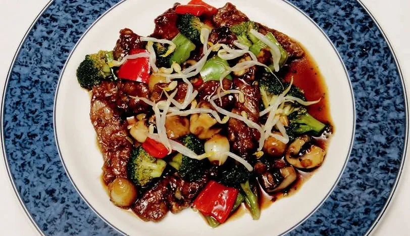 Eti ince ince dilimleyin. Marine etmek için soya sos, susam yağı, un, mısır nişastası, su ve sıvı yağı karıştırın. Etleri bu karışımda en az 1 saat bekletin. Brokolileri kaynar tuzlu suda birkaç dakika haşlayarak buzlu suya alın. Etleri sostan çıkartıp kızgın yağda kızartın. Sos için bir tencereye susam yağı koyup doğranmış sarımsağı soteleyin. Şeker ve sosları ekleyip karıştırın. Nişastayı tavuk suyunda çözüp sosa ekleyin. Sosu kaynatarak pişirin. Bir Çin tavasına veya uygun bir tavaya biraz sıvı yağ koyup 2 diş sarımsağı soteleyin. Arpacık soğanları ekleyip birkaç dakika yüksek ateşte pişirin. Doğranmış biberleri ve 2 çorba kaşığı sıcak su ilave edip bir süre pişirin. Brokolileri ekleyip birkaç dakika daha pişirin. Pişmiş etleri ve sosu ilave ederek tüm karışımı birkaç dakika daha pişirin. Tavayı ocaktan almadan taze soya filizi ekleyip karıştırın ve servis yapın.