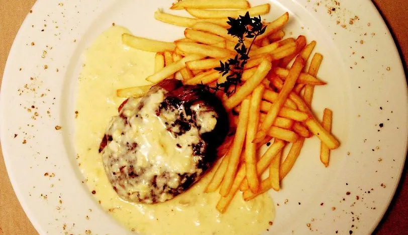 ETİ hafifçe bastırın ve derin bir kaba alın. Üzerine sıvıyağ, tane biber ve biberiye yapraklarını ekleyip bir günbuzdolabında dinlendirin. Tereyağını bir tavaya alıp ince kıyılmış sarmısağı pembeleşene kadar kavurun. Küp doğranmış Brie peynirini ekleyip karıştırın. Beyaz şarabı ekleyip buharlaşmasını bekleyin. Krema, tuz ve beyaz tozbiberi ilave edip sosu çektirin. Diğer tarafta yağlı kızgın tavada bonfileyi kızartın. Kızaran bonfileyi, ayrı bir yerde kızarttığınız patates dilimleri ile servis tabağına alıp üzerine sosu gezdirin. Garnitür için sebzeleri yarı yarıya haşlayıp süzün. Tavada zeytinyağını kızdırın ve ezilmiş sarmısağı ekleyip soteleyin. Sebzeleri tavaya ekleyip 2-3 dakika çevirin. Ayrı bir kasede sebzeleri kümelendirin ve bonfileyle birlikte servis yapın.