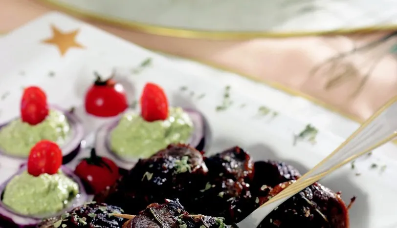 Önce eti biberiye, sirke ve zeytinyağı karışımında 2 saat marine edin. Daha sonra bir tavaya aldığınız sıvıyağında arkalı önlü kızartın. Cam bir kaba alıp üzerine sıcak et suyu, tuz ve karabiber ekleyin. Önceden ısıtılmış 175 derece fırında 40 dakika pişirin. Sos için haşlanmış brokoliyi blendere alın. İçine sarmısak, elma, zeytinyağı, sirke, krema, kaşar peyniri, et suyu, tuz ve karabiber ilave edip bütün malzemeyi blenderden geçirin. Pişen külbastı ile birlikte servis yapın
