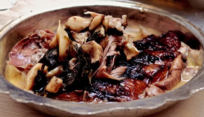 Budun etli kısmını bıçakla yarıp, içine bütün malzemeleri yerleştirerek dikin. Kızgın yağda hafifçe kızartın. Üzerini kapatacak kadar su koyup, 3 saat pişirin. Etin piştiği suyla pilav yaparak servis yapın.,