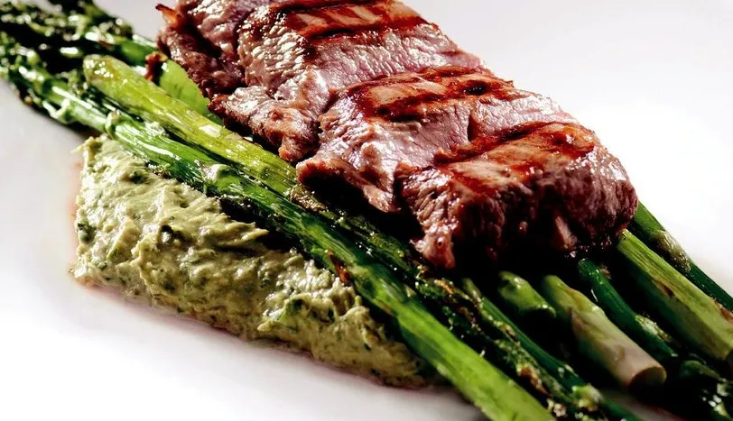 Fesleğenli humus için fesleğen yaprakları, kuru fasulye, tahin, limon suyu, zeytinyağı ve tuzu pütürsüz bir görünüm alana dek blenderden geçirin. Ocağa oturtup, kısık ateşte karıştırarak ılınmasını sağlayın. Zeytinyağını tavada kızdırıp, kuşkonmazları 5 dakika soteleyin. Aynı zeytinyağında tuz ve karabiber eklediğiniz kuzu küşnemeleri önlü-arkalı pişirin. Servis tabaklarına fesleğenli humusu pay edin. Üzerlerine kuşkonmaz yerleştirin. Kuzu küşneme koyup servis yapın.