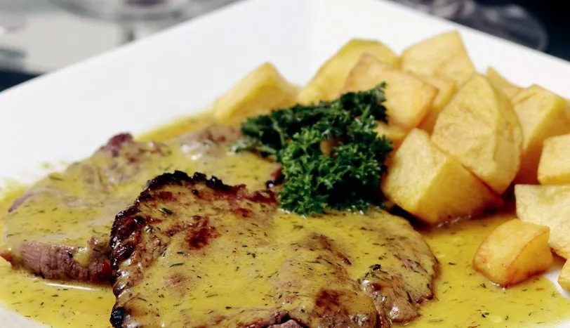 Bonfileleri yapışmaz yüzeyli bir tavada ızgara yapın. Ayrı bir tavaya tereyağını alıp, rokfor peynirini eritin. Tuz ve karabiber ekleyin. Kızarmış bonfilelerin üzerine dökün. Patatesleri küp doğrayıp, kızgın sıvıyağda kızartın. Bonfileyle servis yapın.