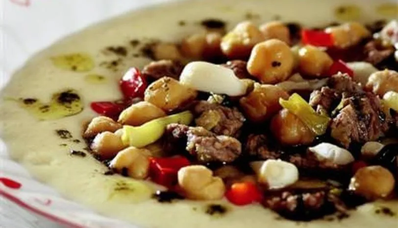 BİR gün önceden suda bekletilen nohudu, parça kuzu eti ve suyu, etler yumuşayana dek pişirin. Pişme sırasında oluşan köpüğü kevgirle alın. Soğanları 2-3 cm uzunluğunda doğrayın. Soğanları, sarmısakla birlikte etli nohuda ekleyerek 10 dakika pişirin. Yumurta, yoğurt, un, tuz ve karabiberi küçük bir tencerede çırpın. Etli nohut suyundan 4 çorba kaşığı alarak bu karışıma ilave edin. 1 dakika kaynattıktan sonra etli nohut yemeğine ekleyerek karıştırın. Tavada kızdırdığınız margarine nane ve kırmızıbiber ekleyerek karıştırın. Servis tabağına aldığınız yemeğin üzerine kırmızıbiberli sosu gezdirerek servis yapın.