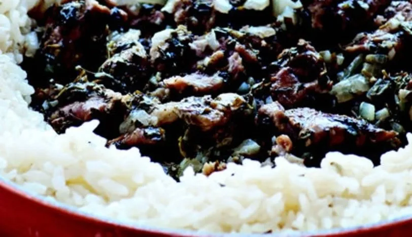 1 soğanı küp doğrayın. Maydanoz ve naneyi ince kıyın. Anason ve kakuleyi havanda dövün. Eti bir kaba alıp soğan, maydanoz, nane, anason, tarçın, kakule, tuz ve karabiberle harmanlayıp buzdolabında 4-5 saat dinlendirin. 2 Pilav için pirinci ılık tuzlu suda 1 saat bekletin. Dinlenen eti ısıya dayanıklı yuvarlak küçük bir kabın içine koyup, yayvan bir tencerenin ya da derince bir tavanın tam ortasına alın. Eti koyduğunuz kabın üzerine bir ağırlık yerleştirin. Yarım su bardağı sıcak su ve 2 çorba kaşığı tereyağını tencereye ilave edip, ocağa oturtun. Kısık ateşte, azalırsa su ilave ederek 2 saat pişirin. 3 Pilav için aynı tencereye, etin üzerini hiç açmadan 2 su bardağı kaynar su ve 2 çorba kaşığı tereyağı ekleyin. Suda beklettiğiniz pirinci süzüp, etin üzerine kapattığınız kabın etrafına yayın. Tuzunu ayarlayın. Tencerenin kapağını kapatıp, pirinç suyunu iyice çekene dek pişirin. Daha sonra etin üzerindeki kabı çıkarıp, pişirdiğiniz kapla servis yapın.
