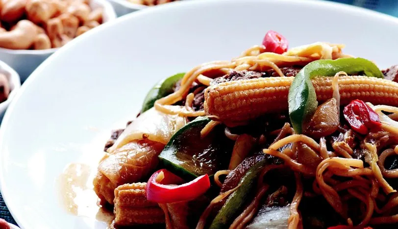 ERİŞTEYİ haşlayıp fazla suyunu süzdürerek kenara alın. Sıvıyağı vog tavaya alıp et ekleyin. Harlı ateşte 5-6 dakika pişirin. Eti bir kenara alın. Wok tavada kalan sıvıyağa önce sarmısakları, daha sonra büyükçe yarım ay şeklinde doğranmış soğan, kabak, biber, et, soya filizi, salatalık ve lahana ilave edip karıştırın. Soyasosu ve tuz ekleyin. Bir iki kez karıştırıp ocaktan alın. Dilediğiniz garnitürle sıcak olarak servis yapın.AŞÇININ NOTUAşçının notu: Çin lahanası yerine normal lahana da kullanabilirsiniz.