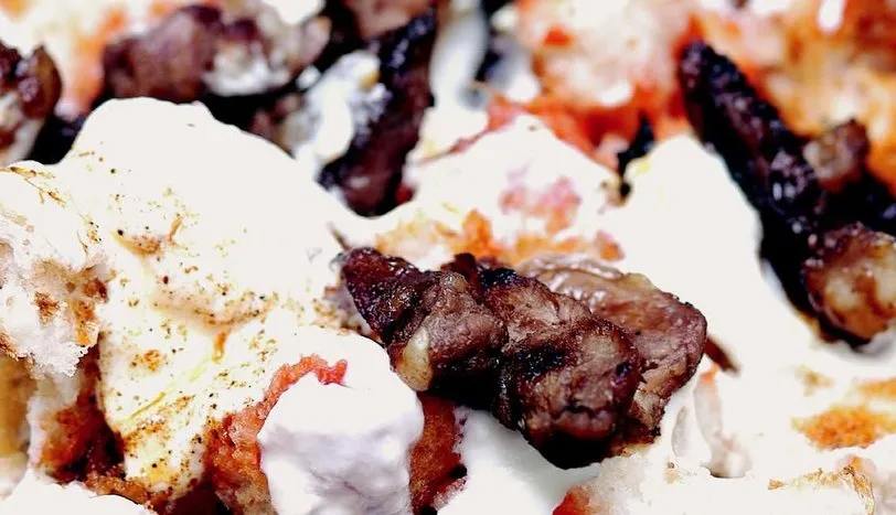 Bİfteklerİ incecik dilimleyin. Tereyağında kavurun. Rendelenmiş domatesi ekleyip, kavurmaya devam edin. Tuzunu ayarlayın. Ayrı bir yerde, minik doğranmış bayat ekmekleri tereyağında kavurup, servis tabağına alın. Üzerine etleri yerleştirin. Sarmısaklı yoğurdu ekleyin. Üzeri için tereyağını eritip, pulbiberi kavurun. Etlerin üzerine gezdirip servis yapın.