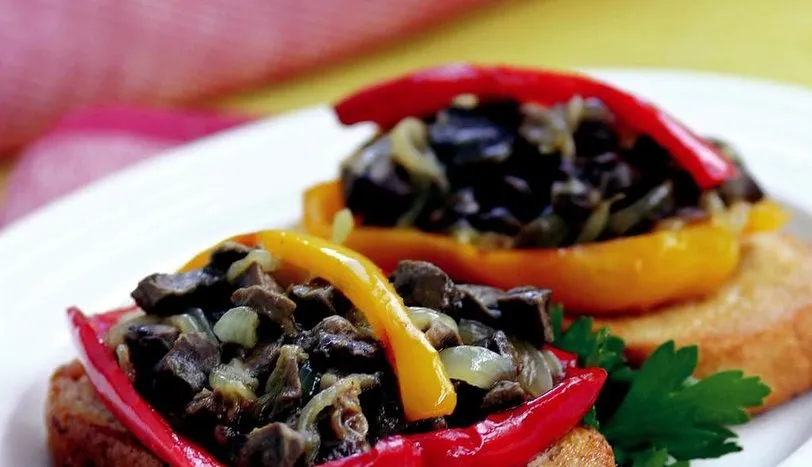 YÜREĞİ yıkayıp, üzerindeki zarı çıkarın. Kuşbaşı doğrayın ve kızdırılmış tereyağında hafif pembeleşene kadar kavurun .Üzerine yarım ay şeklinde doğranmış soğanı ekleyin ve 2-3 dakika daha kavurun. Tuz, karabiber ve kekik ilave ettikten sonra ocağın altını kapatın. 2 çorba kaşığı sıvıyağı ayrı bir tavaya alın. Çekirdeği çıkarılmış ve jülyen doğranmış kırmızı ve sarı biberi tavaya ekleyip soteleyin. Çavdar ekmeği dilimlerinin üzerine, kalan 2 çorba kaşığı sıvıyağı bir fırça yardımıyla sürün. Ekmek dilimlerinin üzerine önce sotelenmiş biberleri yerleştirin.