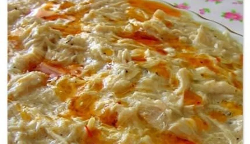 Tavuk etini tencereye alıp üzerini aşacak kadar su ilave edin.Soyulmuş soğan, sarımsak, tuz ve karabiber ilave edip etler yumuşayana kadar haşlayın.Tavuk eti yumuşayınca suyunu süzün.Etleri havanda dövün.Tencereye tereyağını alıp eritin.Unu ilave edip kokusu çıkıp biraz renk alana kadar kavurun.Tavuk etlerini katıp karıştırın.Ayırdığınız tavuk suyundan katıp boza kıvamından biraz daha yoğun bir kıvam alana kadar pişirin.Herseyi servis tabağına alın.Tereyağını sos tenceresinde eritip pul biber ekleyin.Biber rengini verinde ocaktan alıp hersenin üzerine gezdirin.Ilık servis yapın.
