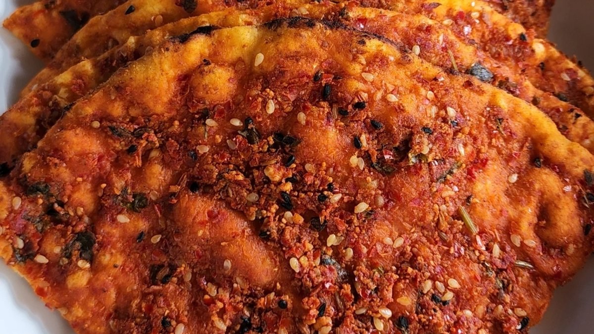 İç harcı için geniş bir karıştırma kabına çökelek, ince kıyılmış soğan, kişniş ve rezeneyi alın. Üzerine zeytinyağı, biber salçası, çörek otu, zahter, susam ve tuzu ilave ederek iyice karıştırın.